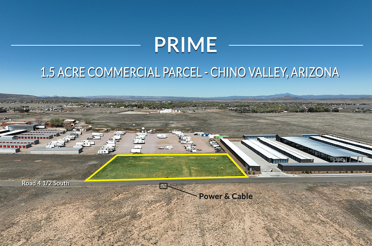 This prime parcel is located off Highway 89 in Chino Valley, AZ. Well is drilled, cased, and capped, utilities within 50 feet, and the perc test is completed for an on site septic system. Large frontage gives great exposure. WATCH VIDEO.